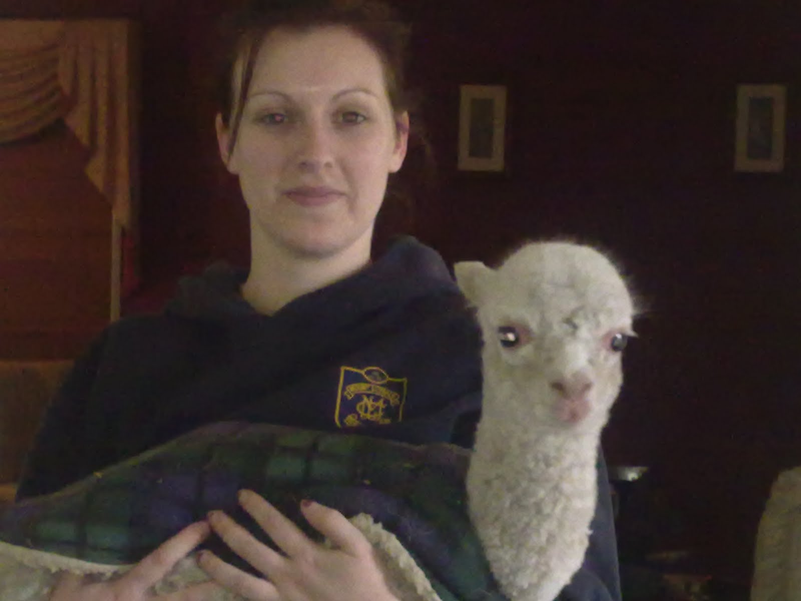 Because of the bushfires last year, out normal mating season did not happen, and so we are having babies now in the winter.They are doig fine, but we are having to keep a very close eye on the farm. I am snowed down with bookwork, that seems to be piling up a foot higher each day, so Lauren, takes the baby for a walk